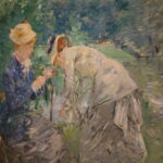 Quoi que l’absence de cadre spatial donne leur sens aux autres perspectives, le décor naturel est l’une des deux autres options surreprésentées dans le travail de Berthe Morisot. « Sur la plage » travaille le flou comme pour défier la notion d’effet de réel. La plage est essentiellement violette ; les silhouettes des personnages sonnent plus aquarelle que huile ; et la dimension naturelle s’estompe dans un travail sur la lumière où, in fine, les parties les plus figuratives sont sans doute les chaises vides. Rien d’étonnant, dans la mesure où la vacuité est une forme importante de la représentation chez ce peintre. Elle peut, notamment :