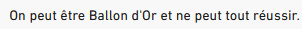 Ou on ne peut être Ballon d’or et peut tout réussir. Ou on ne peut tout Ballon d’or et ne peut être. Ou on peut être et ne peut tout réussir Ballon d’or. Oh pis mârde à la fin !