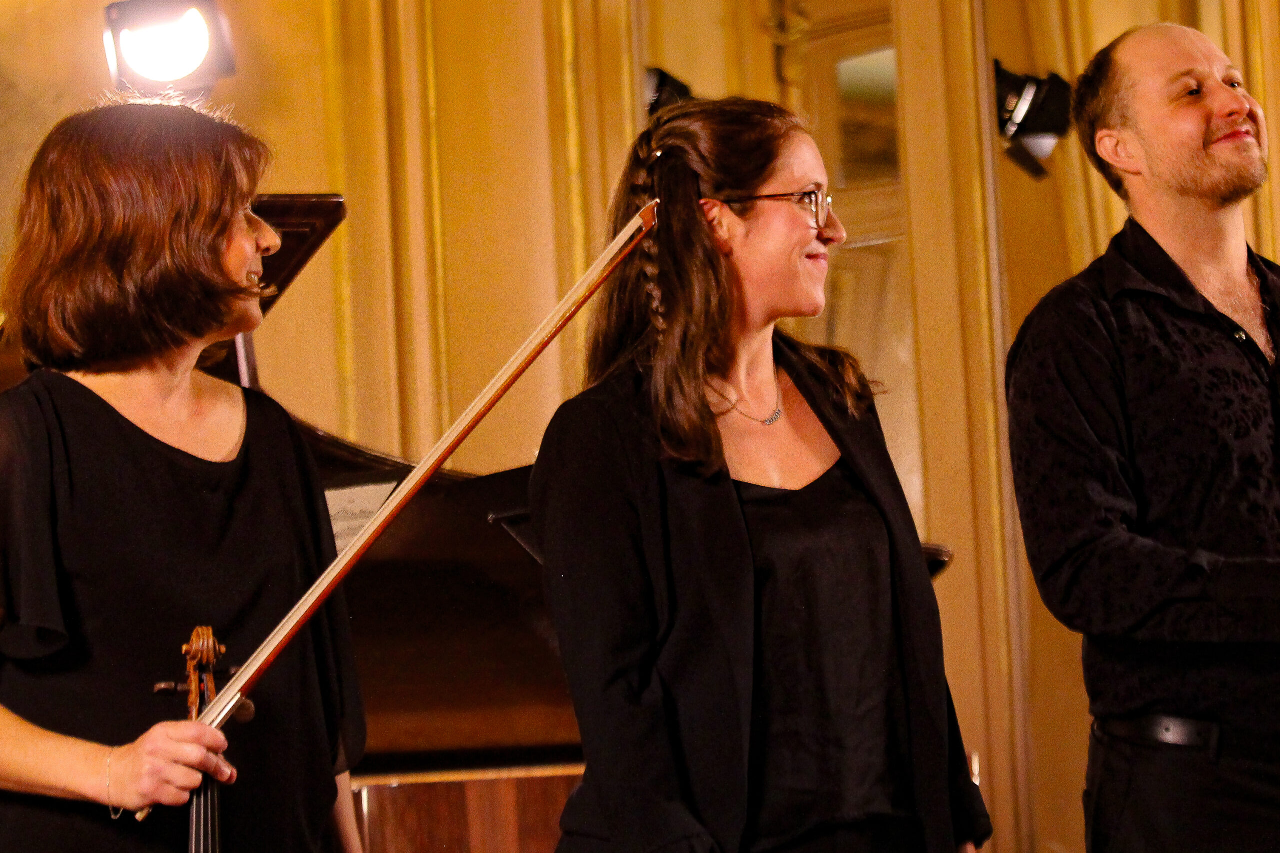 Pour clore le premier concert de la quatrième édition du festival Érard, Jérôme Granjon cède sa place au piano à Delphine Armand, accompagnée de Vladimir Dubois au cor et de Saskia Lethiec au violon. Le trio en Mi bémol op. 40 propose une demi-heure de musique, répartie en quatre mouvements. L’œuvre a été inspirée au compositeur quand il a vu le soleil poindre entre deux troncs d’arbres – pensez-y la prochaine fois que vous crapahuterez à la fraîche dans quelque contrée sylvestre ! L’andante liminaire met en valeur chacun des participants.