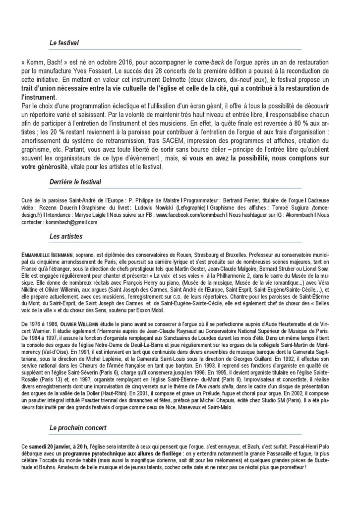 La soprano Emmanuelle Isenmann et son complice Olivier Willemin à l’orgue vous attendent pour un programme riche et varié d’environ une heure. Entrée libre, écran géant a priori, grande musique à la portée de tous, et programme papier offert aux cinquante premiers spectateurs. En plus, on est plutôt sympa. Enfin, en général. Alors, prêts ?